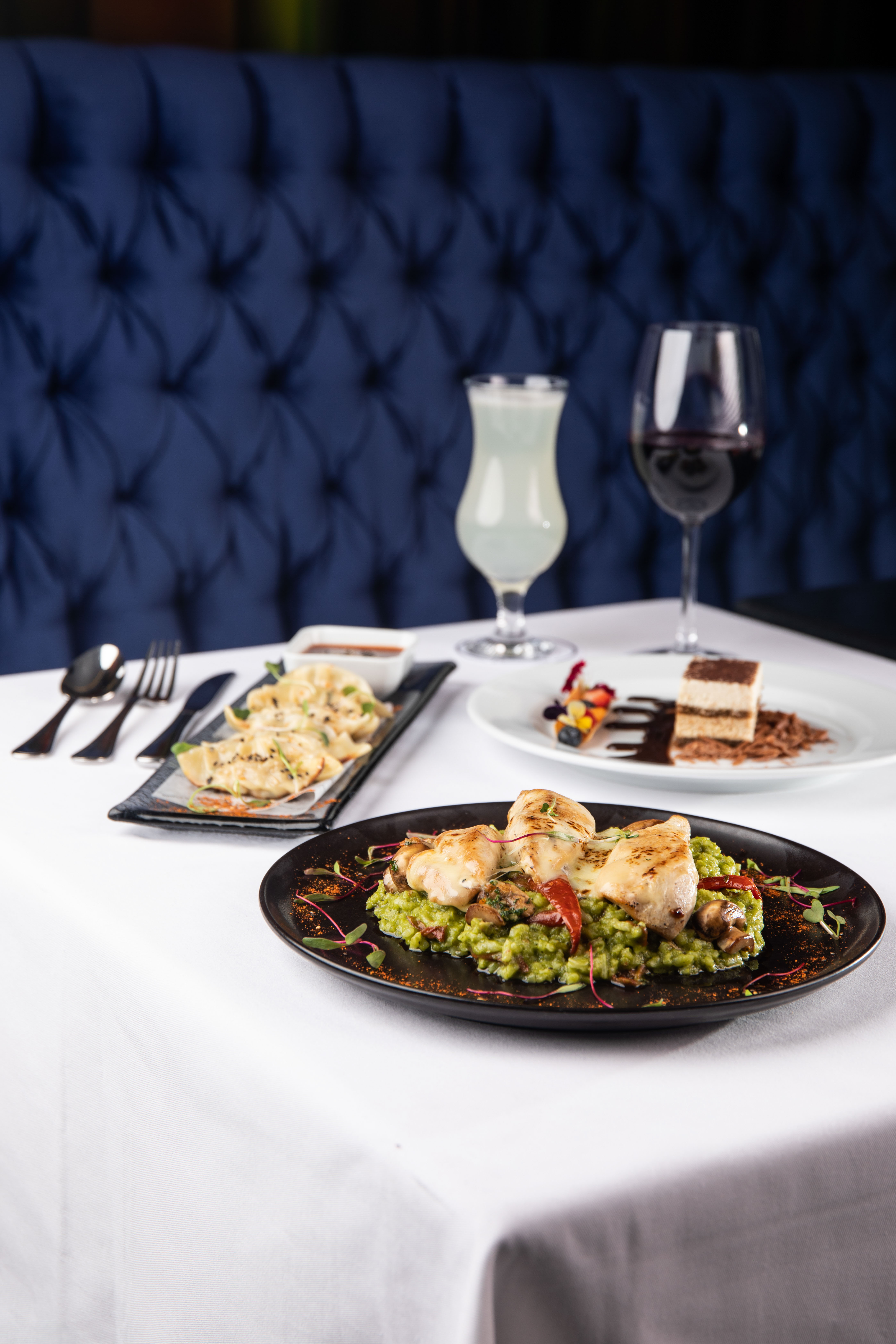 Sesión de platos y bebidas.